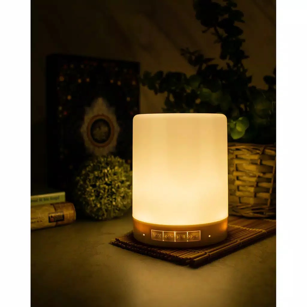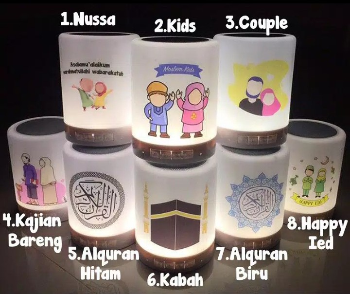 Dapat disimpan diruangan manapun dengan mudah sebagai hiasan nuansa islami dan memiliki lampu warna-warni serta dapat dipakai sebagai lampu tidur diiringi dengan bacaan ayat-ayat suci al-qur'an.